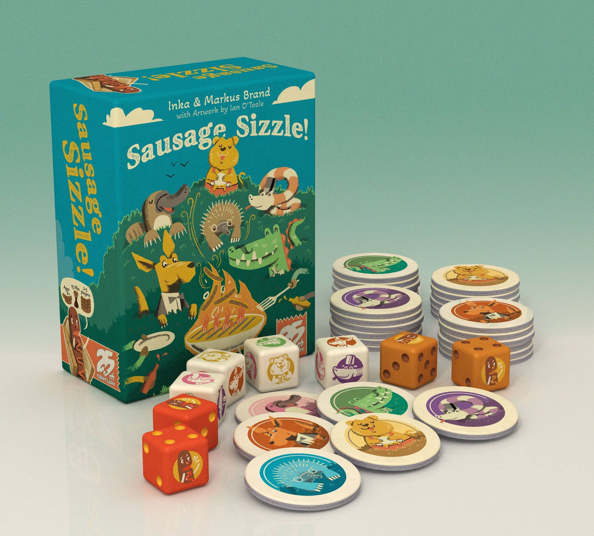 Engaging and quick dice game, always a hit and laugh at the table, very easy to learn. Originally released by Kosmos in Germany as Wurfelwurst. From acclaimed designers Inka and Markus Brand. Art by renowned illustrator Ian O’Toole featuring cute Australian themed animal characters to life. Small box game that is very portable.